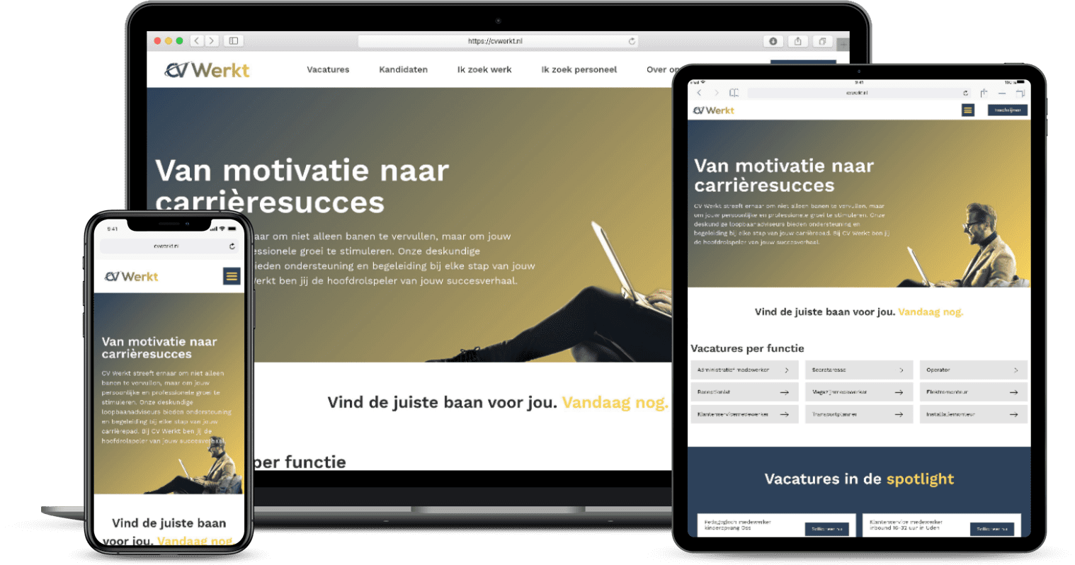 Een goede recruitment website is cruciaal als je succes wilt behalen en wilt uitgroeien tot een grote recruitment website. Zorg ervoor dat je website is gebouwd met de focus op je doelgroep. Het is namelijk belangrijk dat je doelgroep jouw website weet te vinden en zodra ze je website hebben gevonden niet weer binnen een paar seconden weggaan. Dit is een van de belangrijkste onderdelen voor een goede SEO (Search Engine Optimazation) positie binnen de zoekmachines. Maar dat is natuurlijk niet het enige wat belangrijk is. Ook door middel van goede content, afbeeldingen en video’s te plaatsen op de recruitment website die aansluiten bij de wensen van je doelgroep kun je de vindbaarheid van je recruitment website vergroten. En de vindbaarheid voor een openstaande vacature is cruciaal, want hoe wil je ooit de geschikte kandidaat voor een vacature vinden als je de vacature niet eens kunt vinden?Â