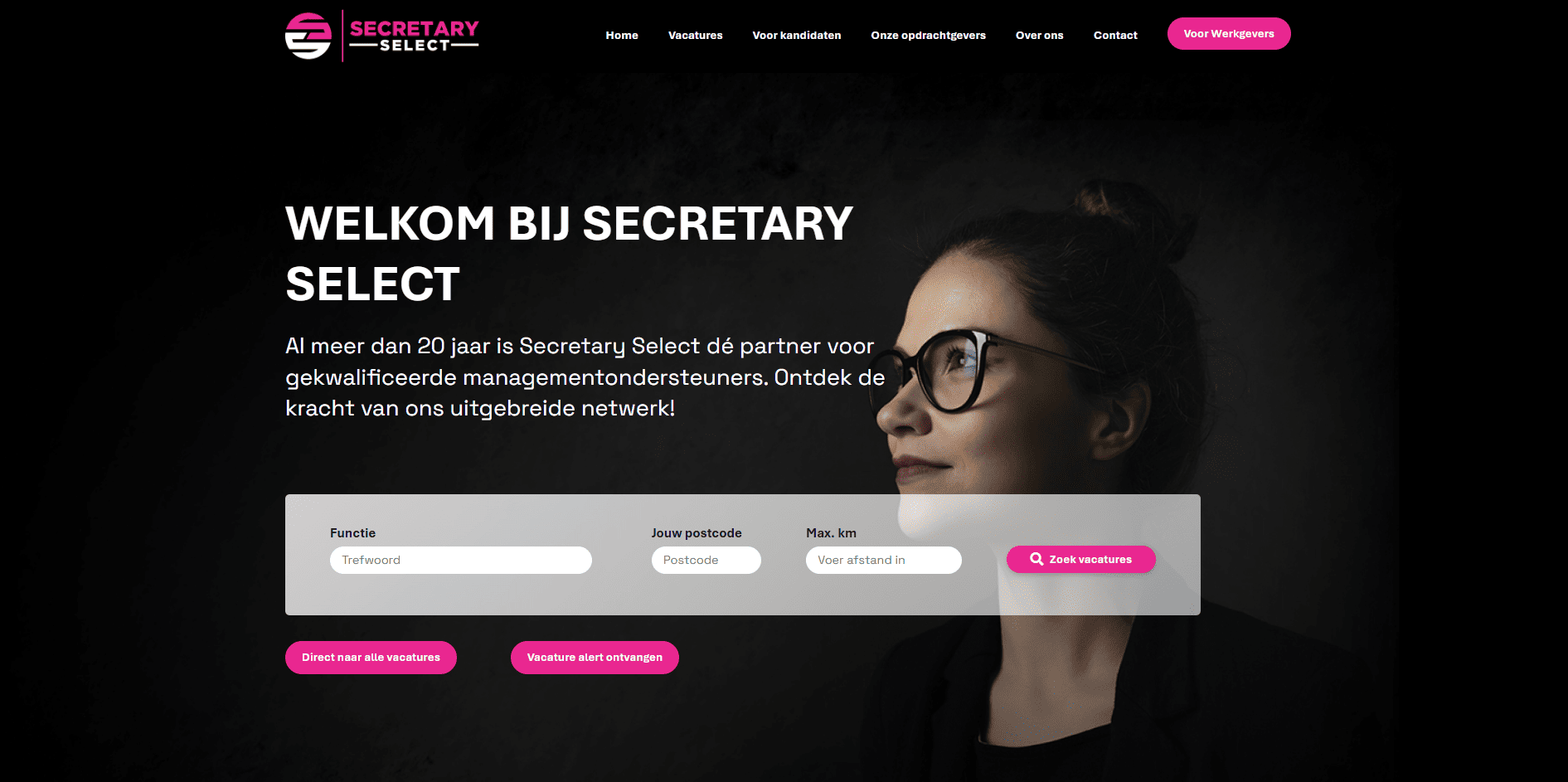 Secretary Select wilde een vernieuwend platform neerzetten binnen de niche van secretariële functies. Het doel was om niet alleen een moderne en gebruiksvriendelijke omgeving te creëren, maar ook om hoogwaardig talent aan te trekken. Een extra uitdaging was de korte deadline, waardoor snelheid en efficiëntie cruciaal waren.